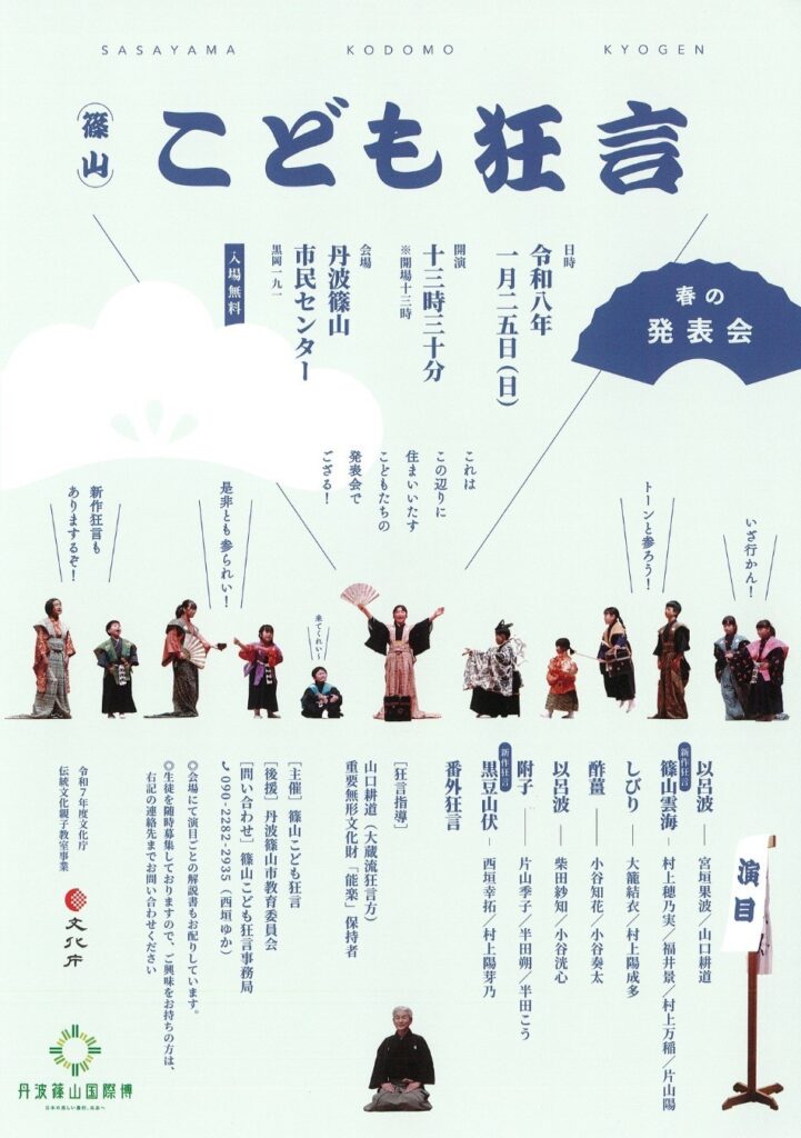 このたび、兵庫県丹波篠山市で活動しておられる「篠山こども狂言」さまの発表会パンフレットに、Webコラム「描く狂言」のイラストが掲載される運びとなりました。