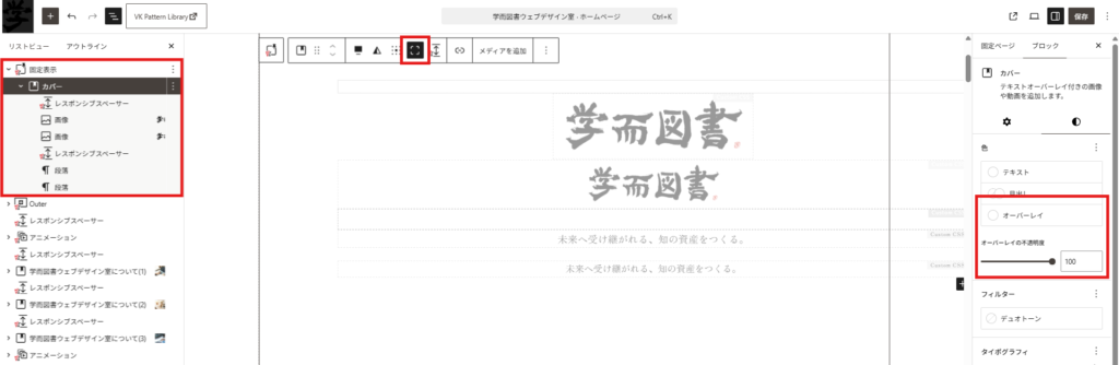 1.「固定表示」ブロックの配置とカバーブロックの設定